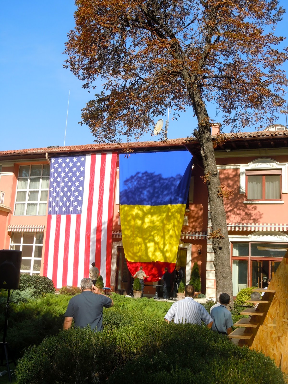 After playing around all summer I had to get back to reality and help prepare for a big event, which happened last week. My PCV friend Grant and I were asked to be on the planning committee for the official 'closing of post' celebration at the US Ambassador's home. Grant and I were in charge of putting together a volunteer 'festival' in which the different regions of Romania were showcased by their art, music, dance, food, etc. We ended up with 15 booths which were amazing! I won't go into detail of all the work this took, both by the planners and the participants. The venue for the event could not have been more perfect, the weather was great (a little hot!), the food and drinks were plentiful and everyone had a great time. There was a LOT of media present and some volunteers made the national news. The Ambassador and his lovely wife, Libby made sure to have a visit and photo opportunity at each booth with the community participants the volunteers brought to help. The cool part was that almost all of our 35 volunteers were personally involved in the event. Truly a group effort! (photos below)